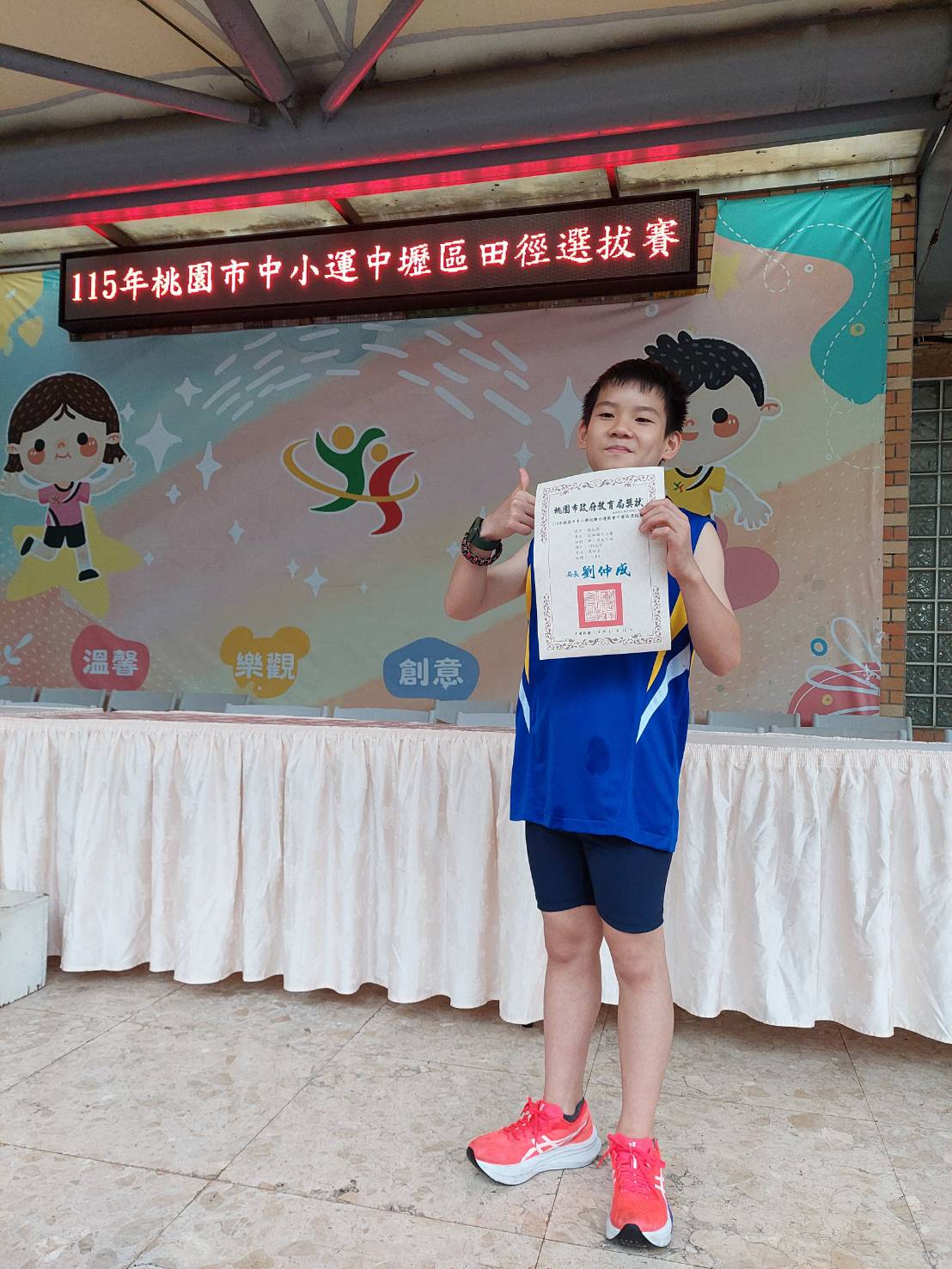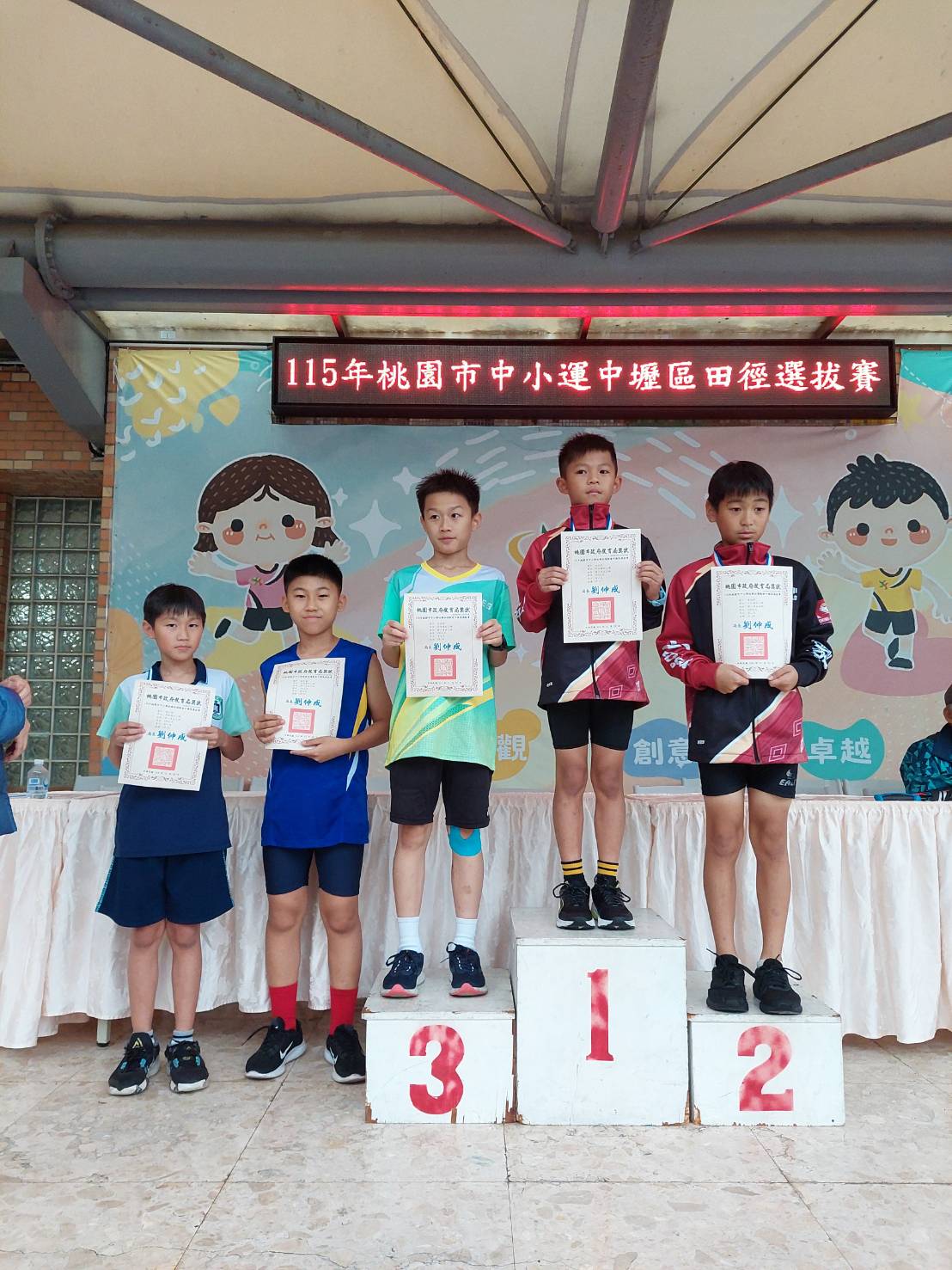 五年二班 蔡叔䓂 榮獲國小男生乙組100公尺 第四名
