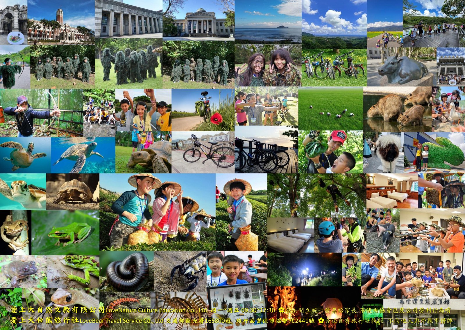 | 二、 | 課程主題:①蘭陽山野求生營(5天4夜)、②小琉球海龜營(5天4夜)、③宜蘭生態農場營(3天2夜)、④TPE博物館生態營(3天外出不過夜)、⑤屏東柚園攀樹營(3天外出不過夜)、⑥節肢小怪獸營(3天大學不過夜)、⑦池上單車生態營(4天3夜)。 |