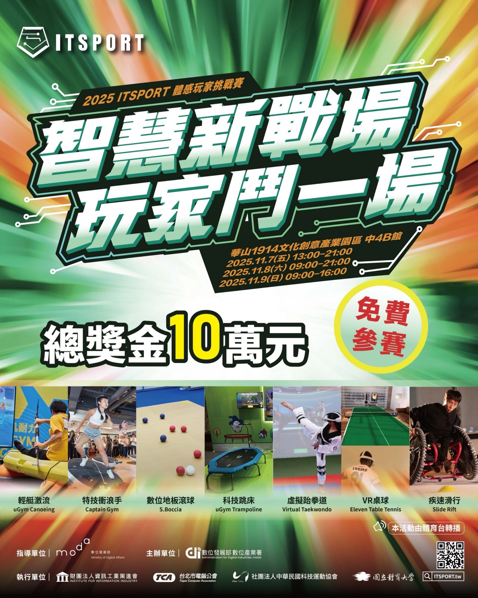 | 一、 | 數位發展部數位產業署為帶動體感互動與虛實整合市場擴展,與本會合作舉辦「2025 ITSPORT 體感玩家挑戰賽」,提供民眾近距離接觸新興科技與多元體感挑戰體驗,並協助業者進行產品試驗與優化,加速創新應用推廣與產業升級,進而促進我國數位內容與運動科技產業之發展。 |
